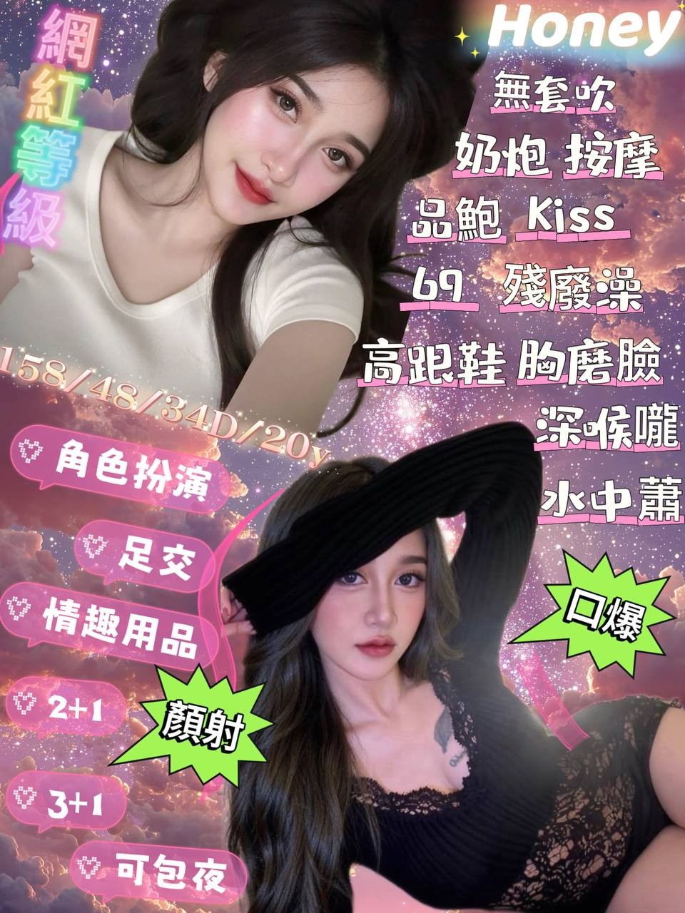 無套吹/奶泡/按摩/品鮑/69/親嘴/冰火/舔蛋/共浴/高跟鞋/胸膜臉/絲襪/深喉嚨/水中蕭/🉑️自衛秀/🉑️舌吻/🉑️口爆/🉑️足交/🉑️入珠/🉑️角色扮演/🉑️情趣用品/🉑️無套/🉑️顏射