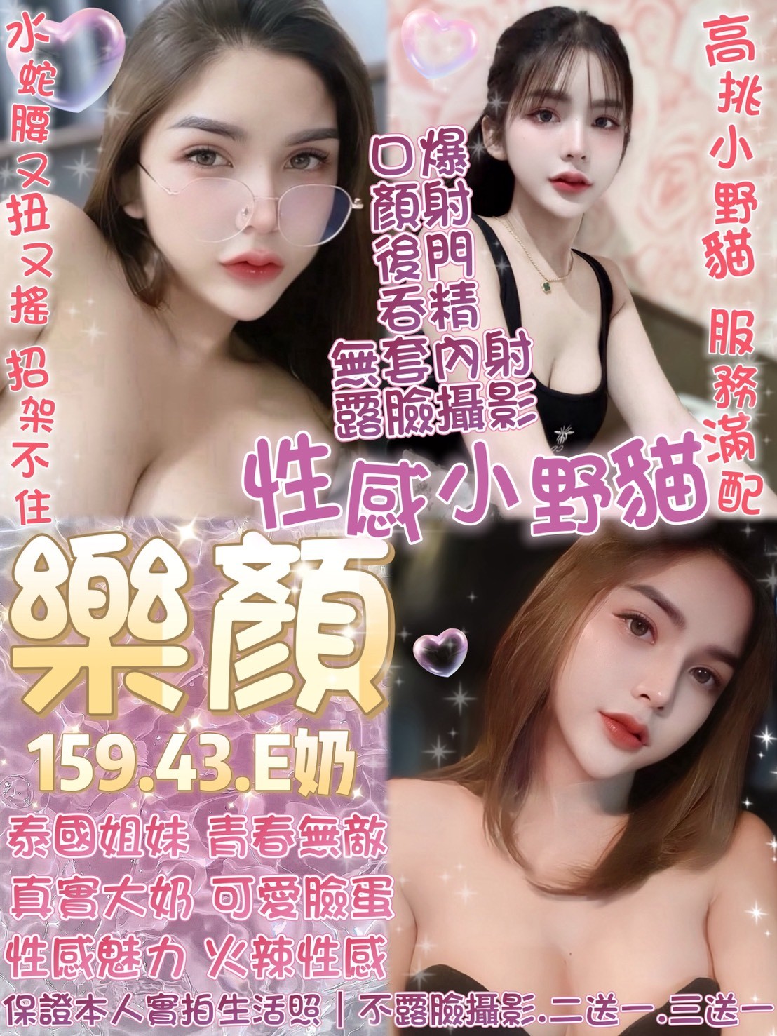 100%本人影照自拍🌟性愛姿勢多變不重複💕嘴巴會轉會舔會吸🌟邊舔眼神超撫媚✨臉蛋一絕身材欠撞💯
