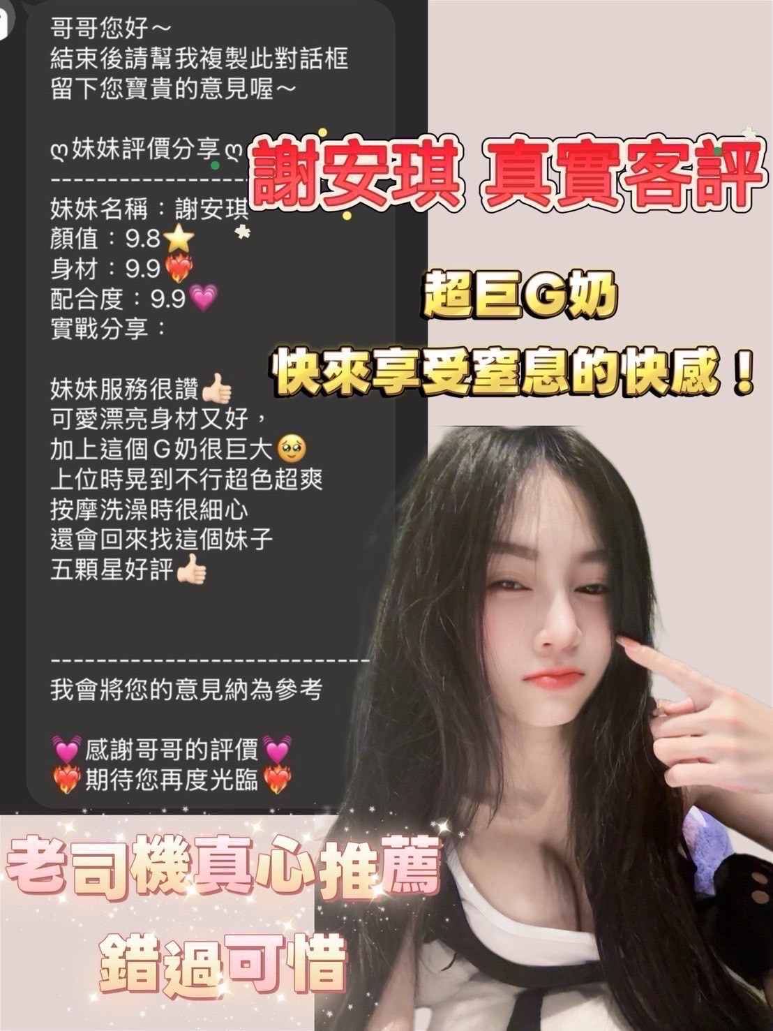泰國🇹🇭小臉白皙纖瘦骨感美女,長髮精緻,外型亮麗,聽話好操控,尤其他的巨大天然G奶雙峰,讓每個哥哥都愛不釋手、每每難忘,檔期天數不多,真心推薦不要錯過,我敢發誓,他真的真的巨漂亮的啦!